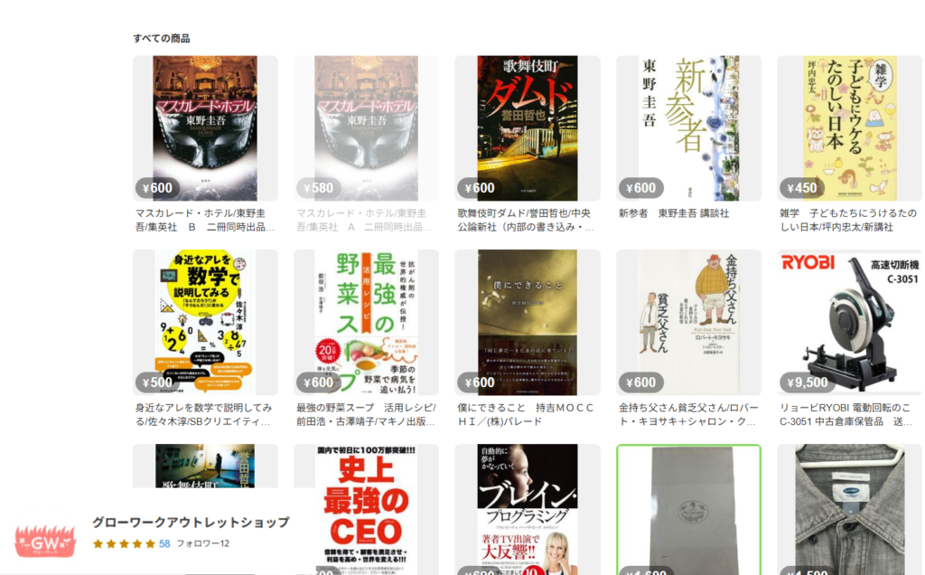 メルカリmercari グローワークアウトレットショップ いろいろ商品出品 2/25